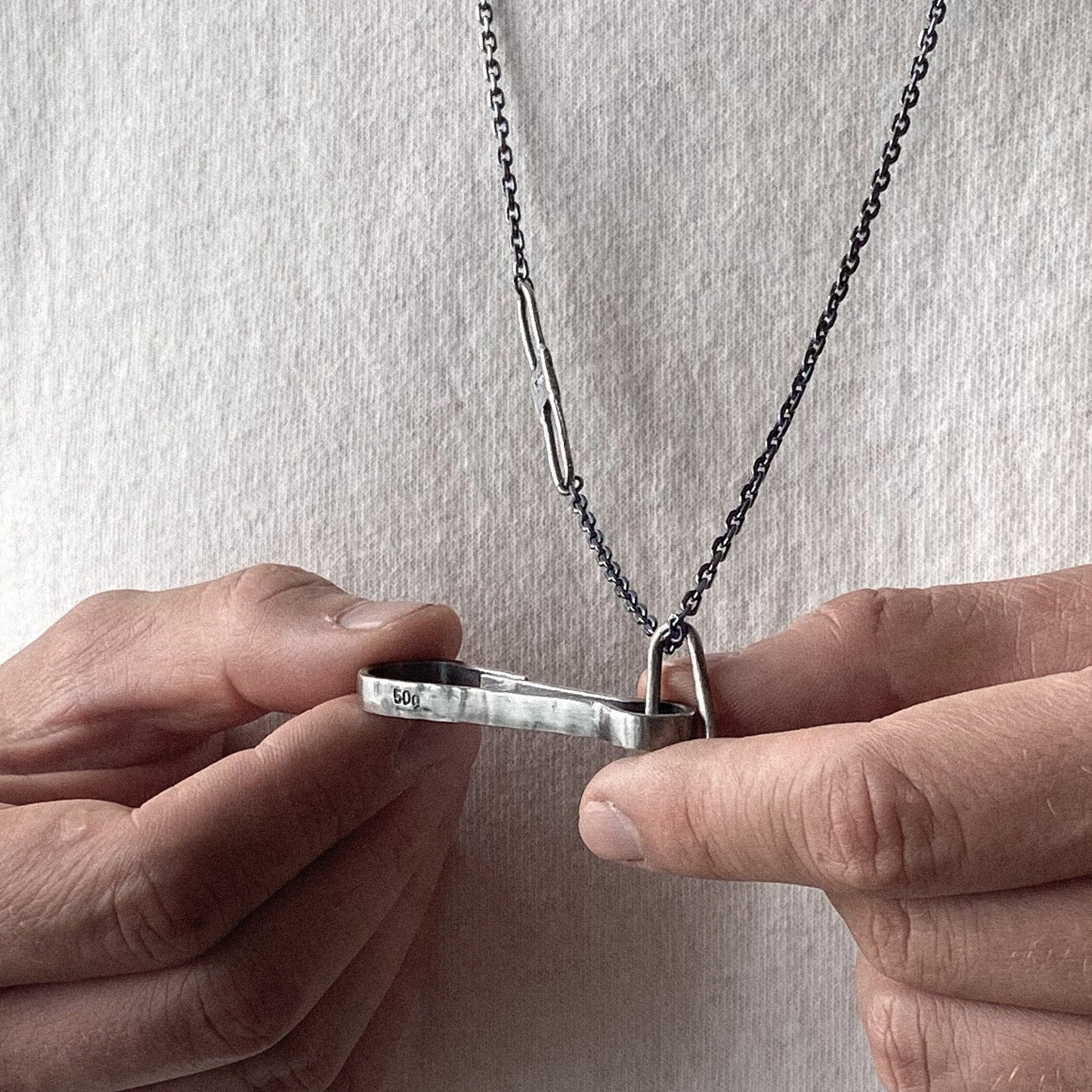 By default, the pendant is sold with our signature blackened chain (please let us know if you would like a white chain).