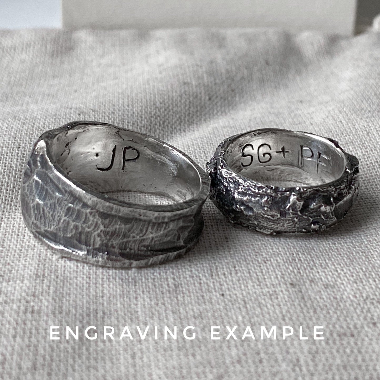 If you like our handwritten font (example in the product card), you can leave your initials or a secret word inside the ring. Just leave them in the "engraving" line before adding the product to the cart. Please note that this service is available for a maximum of five characters.