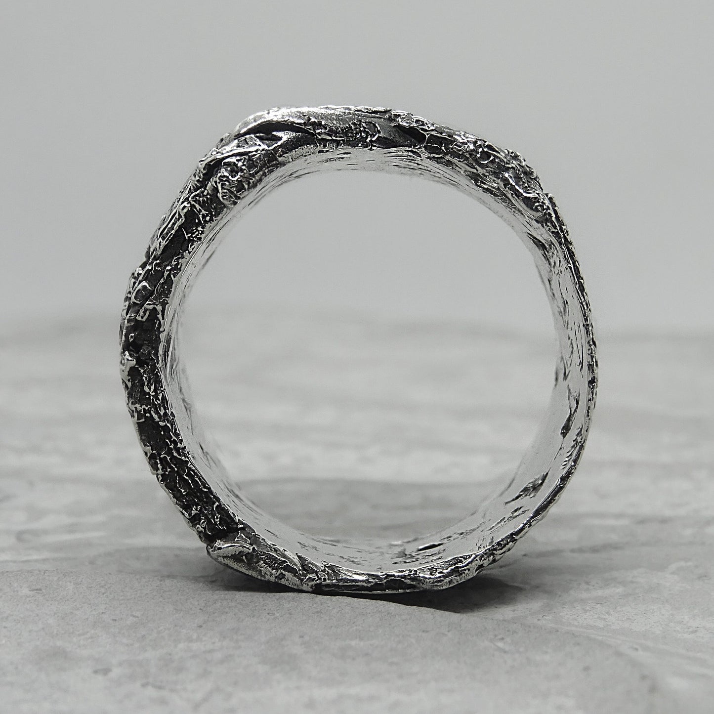 Each ring is custom-made in your size, ensuring unique variations in texture while maintaining the original design. The comfortable fit allows it to be worn alone as a statement piece or stacked with other rings for a more layered look.