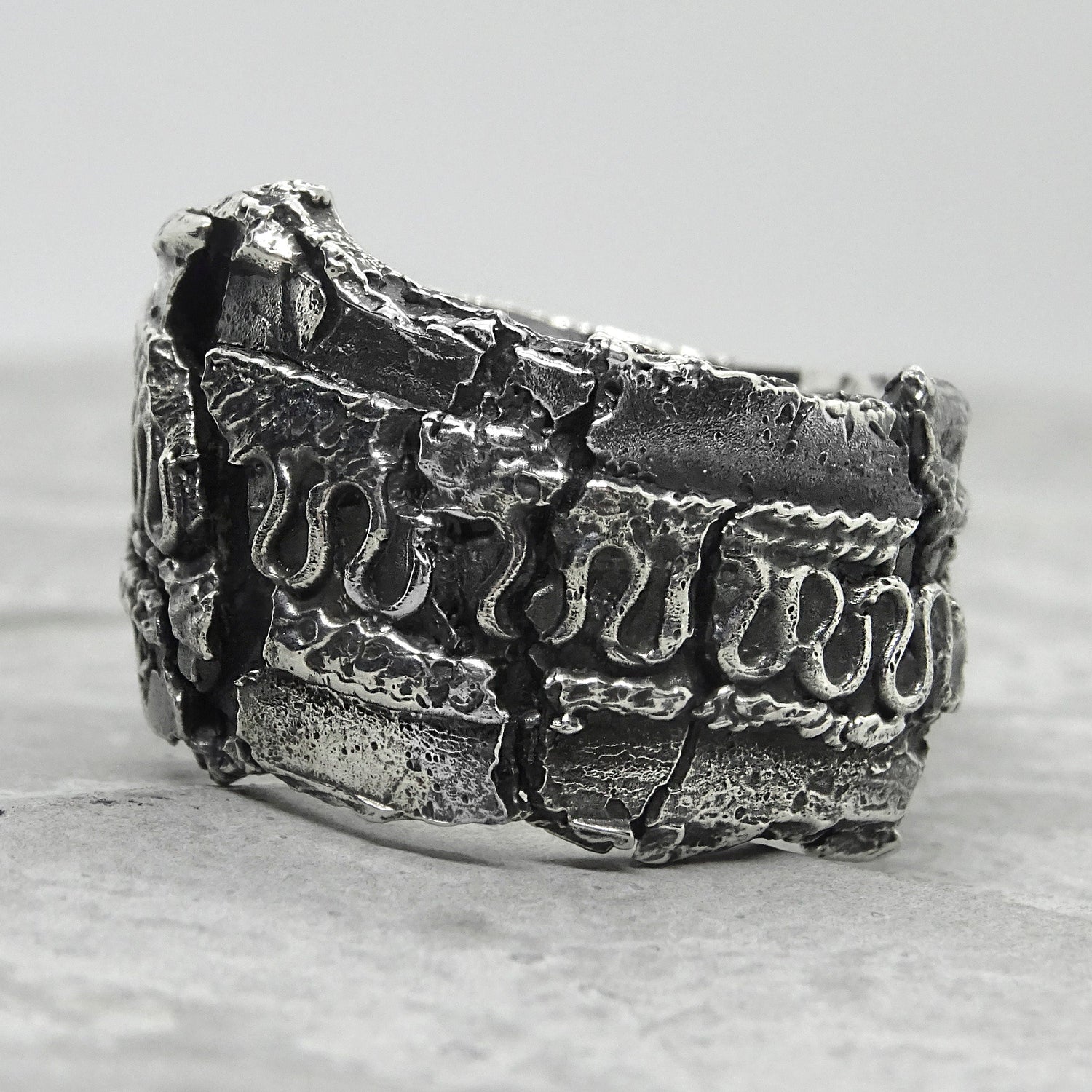 OLD ISTANBUL – Wide Textured Silver Ring with Cracks and Oriental Pattern.