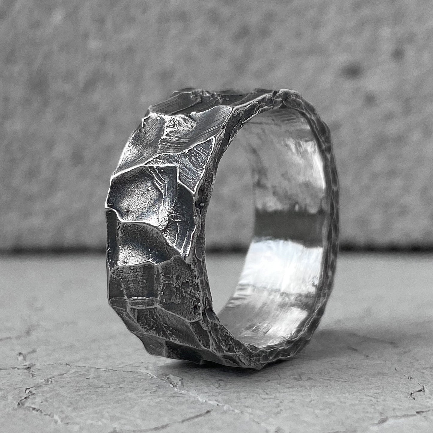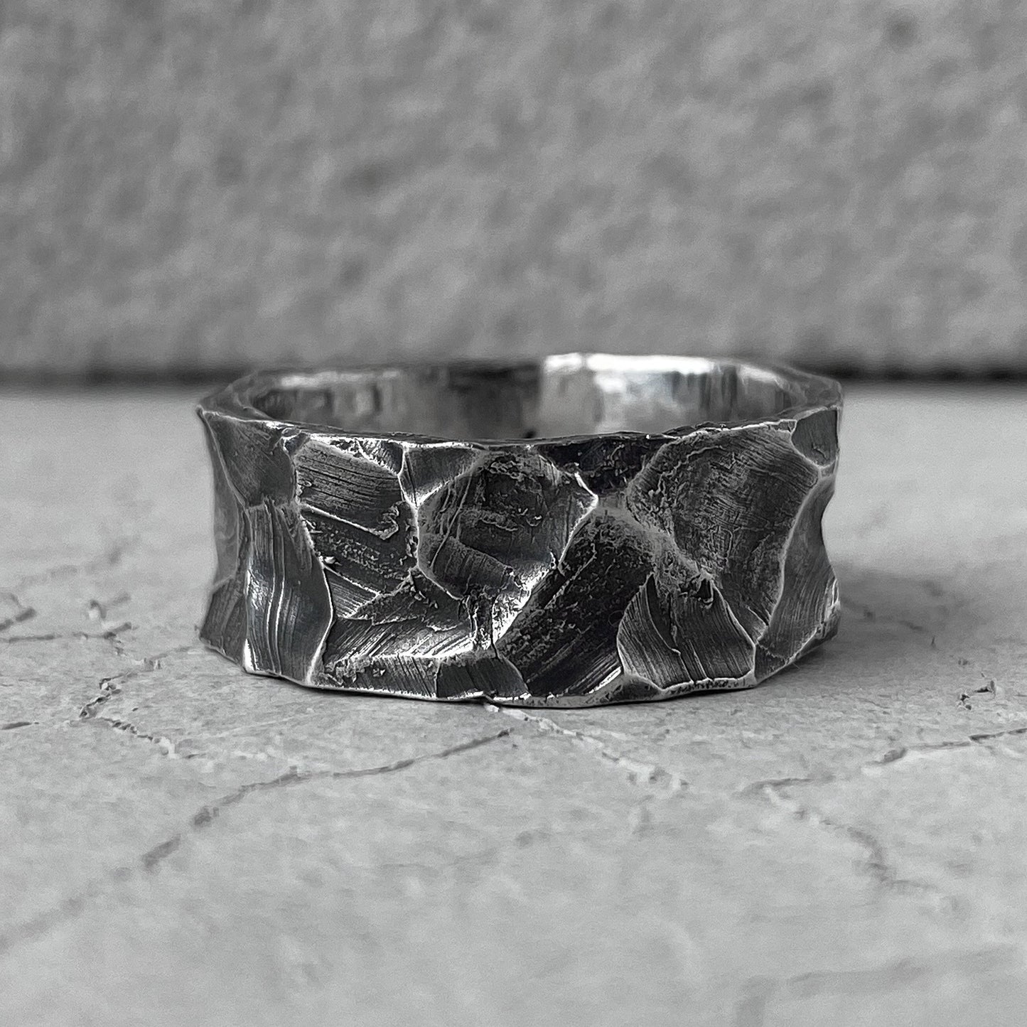 Anneau de poussière - anneau à large bande avec une texture de pierre prononcée