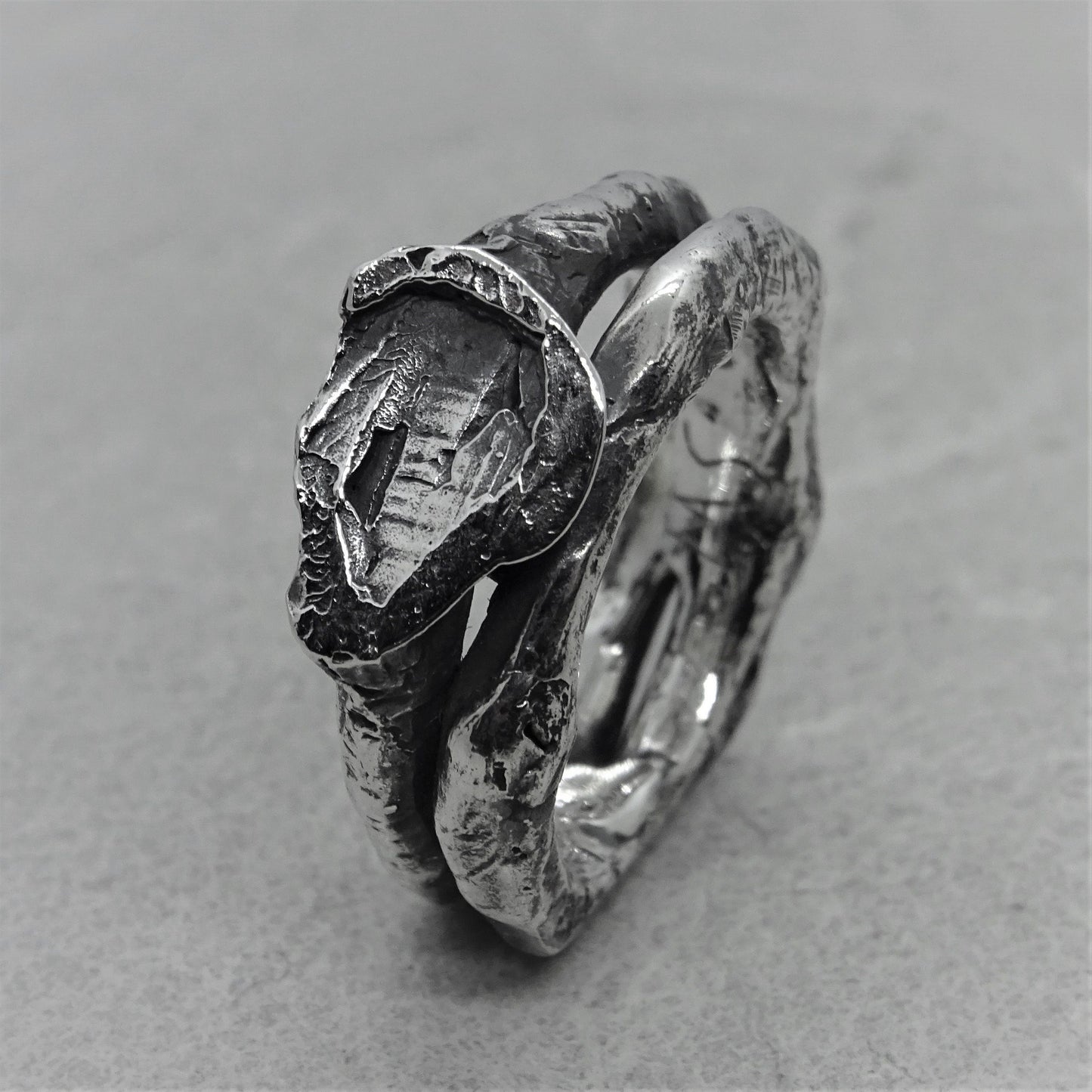 説明:ダブルリングは、1つの明るいアクセントを持つ2つのシンプルな製品の組み合わせです。シンプルさとオリジナリティを愛する人のために。私はジョージアに住んでいたときにこのモデルを思いついた。そして、そこでこのリングの最初のモデルを作りました。それは魂と意識の一致を体現しています。それはエレガントでありながら残忍です。元のテクスチャは手動で作成され、細部まで仕上げられました。