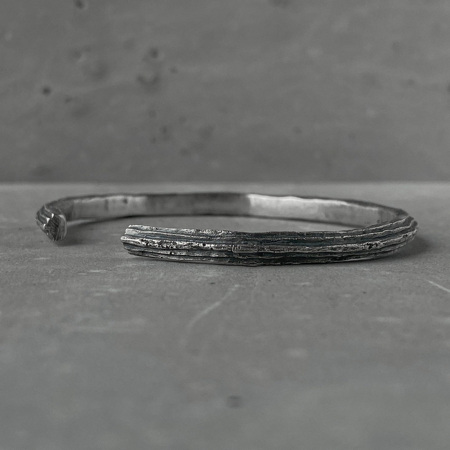 天の川バングル-珍しい質感のСhunkyシルバーカフブレスレット